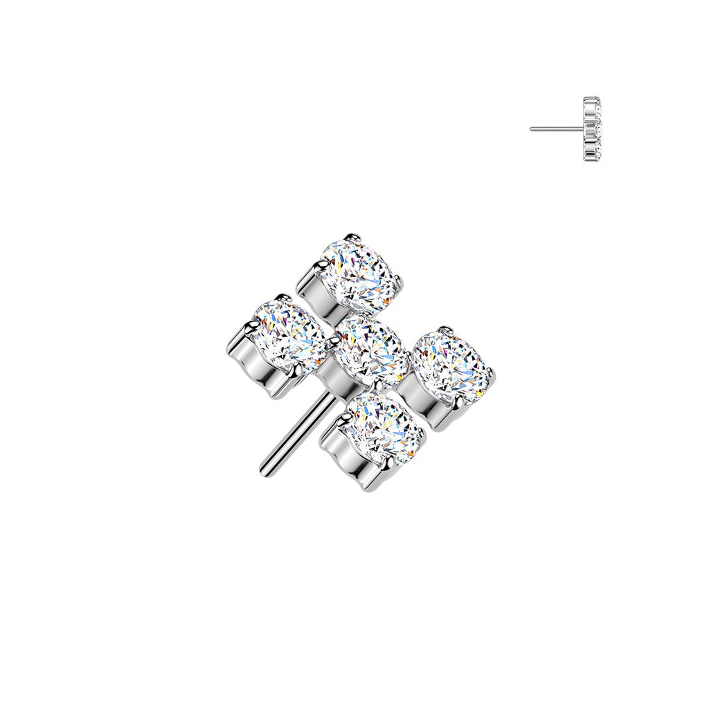 Titanium High Polish Jewelled 5 CZ Cross Threadless Push In Top (Base Sold Separately) - TT255