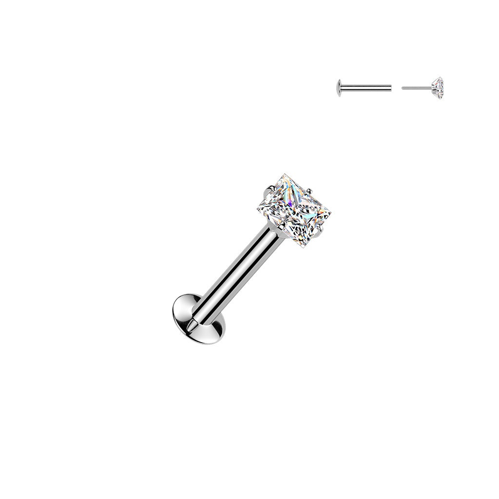 SS316L Steel Prong Set Jewelled Square CZ Threadless Push In Labret with 18 Gauge - TT257