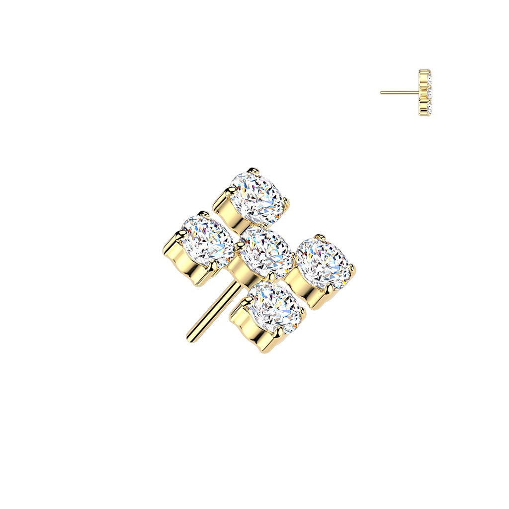 Titanium Gold Jewelled 5 CZ Cross Threadless Push In Top (Base Sold Separately) - TT255A